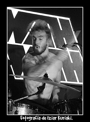 Grupo en movimiento continuo, solo se paran cuando se acercan al micrófono, o no, Caníbales, El Semental y Vivos o Muertos fueron las tres primeras canciones a las que se fueron acostumbrando nuestros oídos y músculos, los míos esa noche no quedarían “pá ná”.